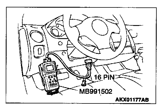 1. Connect scan tool MB991502 to the data link connector.