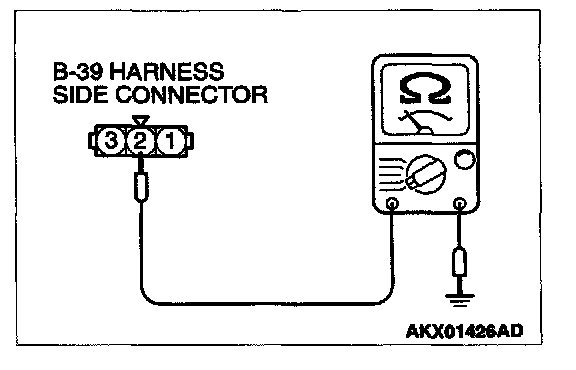 1. Disconnect the connector B-39 and measure at the harness side.