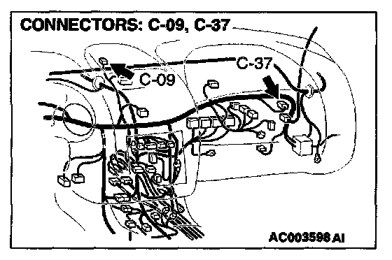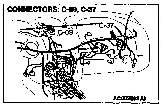 2. Measure the resistance between compass-ECU connector C-37 and multi-center display connector C-09 by backprobing.