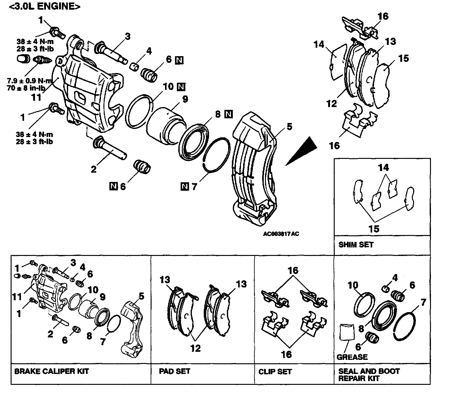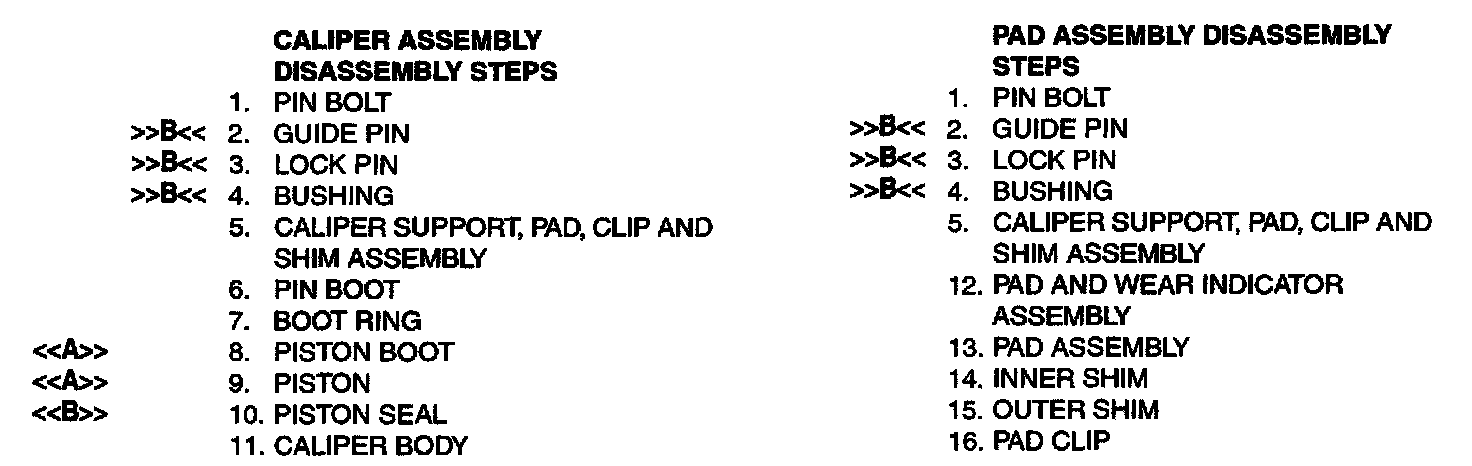 When disassembling the disc brakes, disassemble both sides (left and right) as a set.