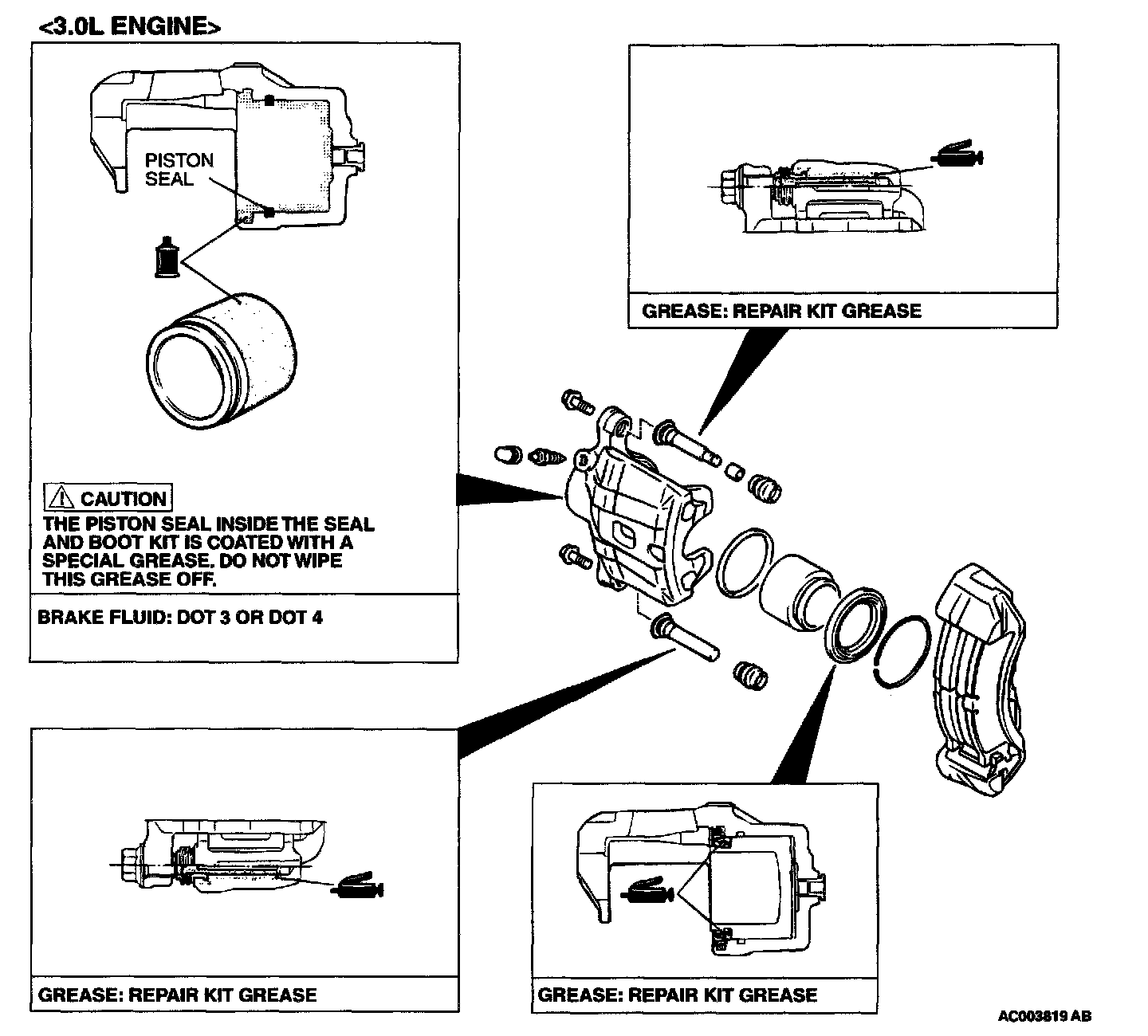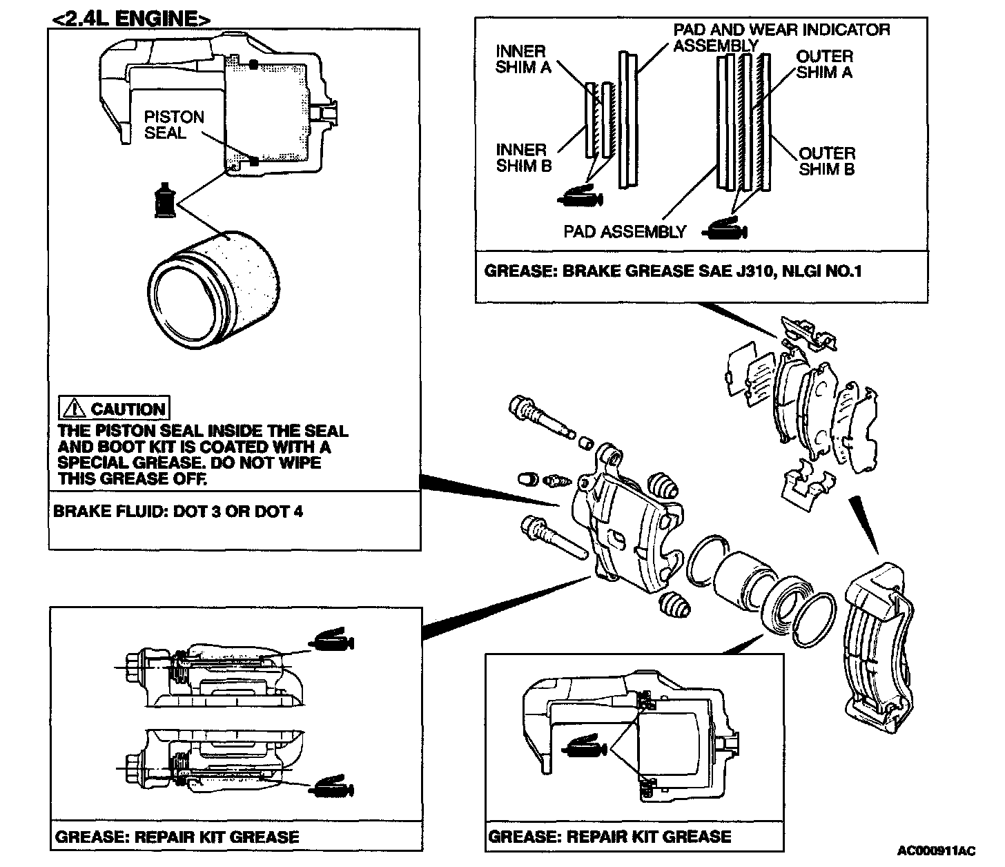 - If there is significant difference in the thickness of the pads on the left and right sides, check the sliding condition of the piston, lock pin and guide pin.
