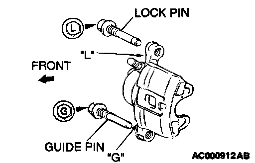 Install the guide pin as illustrated that each head mark of the guide pin and the lock pin matches the indication mark ("G" or RL") located on the caliper body.