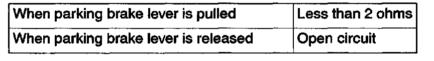 Check for continuity between the parking brake switch terminal and the switch mounting bolt.