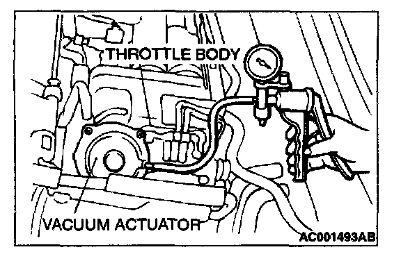 2. Check that the throttle lever operates when applying vacuum, and the vacuum is maintained.
