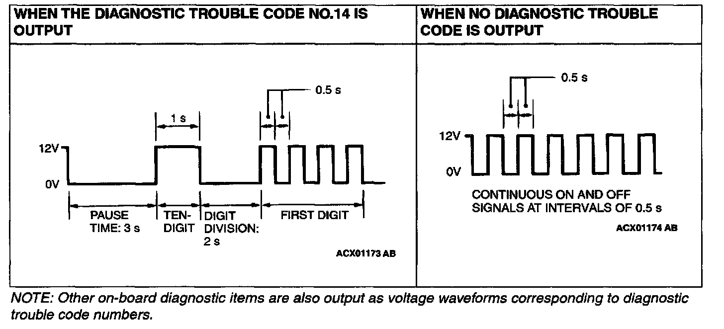 2. Read a diagnostic trouble code by observing the flash display pattern of the auto-cruise control indicator light in the combination meter.