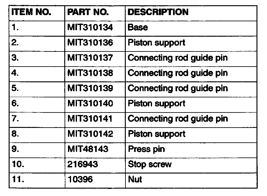 7. Remove the piston assembly from the base. Remove the guide pin and press pin from the assembly.