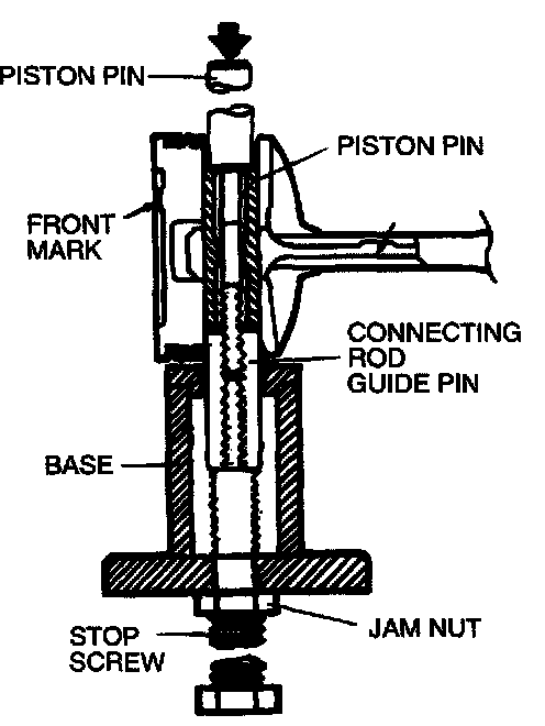 6. Press the piston pin through the connecting rod until the guide pin contacts the stop screw.