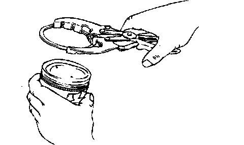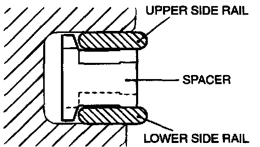 2. Install the upper side rail. To install the side rail, first fit one end of the rail into the piston groove, then press the remaining portion into position by finger.