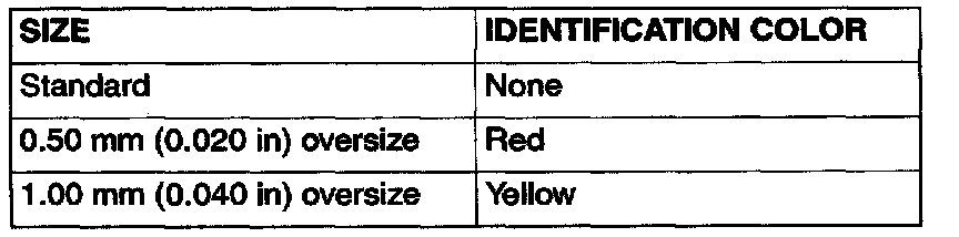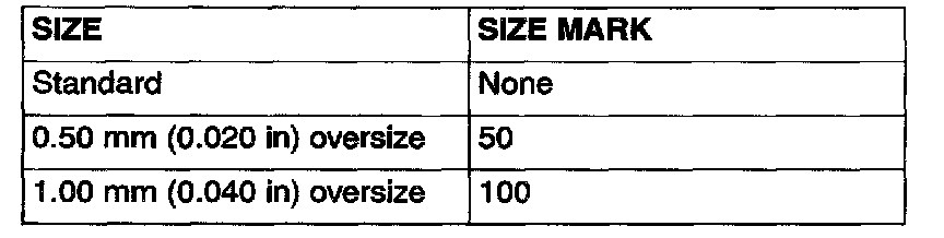 NOTE: Size marks on piston rings are as follows.