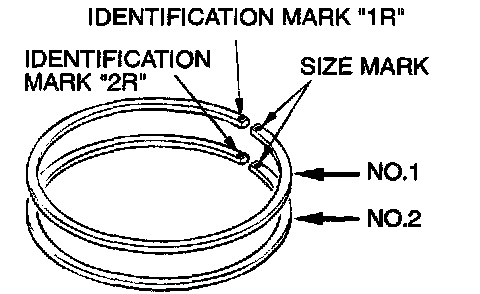 1. To prevent wrong installation, check the identification mark of each piston ring. The identification mark is stamped near the ring gap: