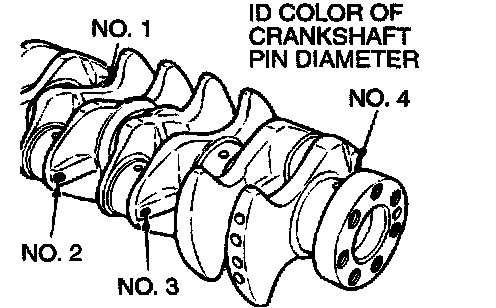 2. If the crankshaft pin outside diameter ID color is yellow, for example, select a bearing whose ID mark is 1 or ID color is yellow.
