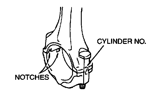 1. Verifying the mark made during disassembly, install the bearing cap to the connecting rod. If the connecting rod is new with no index mark, make sure that the bearing locking notches are on the same side.