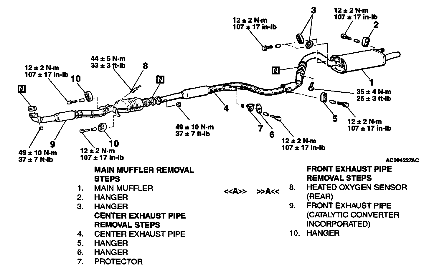 For models with dual catalytic converters contact your local Mitsubishi dealer with the last 8 digits of the VIN for parts information.Removal And Installation: