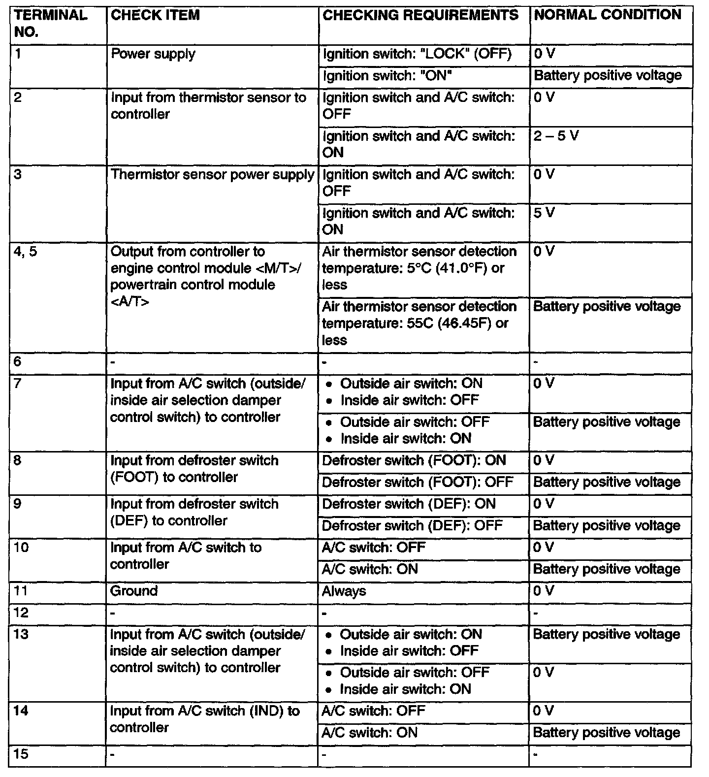 Pinout Values and Diagnostic Parameters