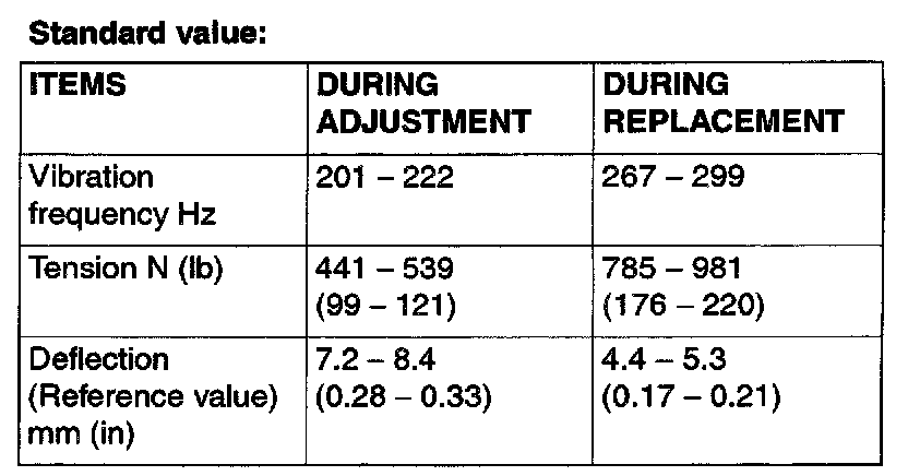 4. Check the belt deflection amount and tension, and read just if necessary.