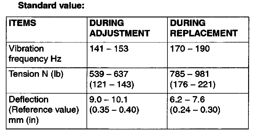 If the tension or deflection is outside the standard value, adjust by the following procedure.