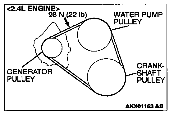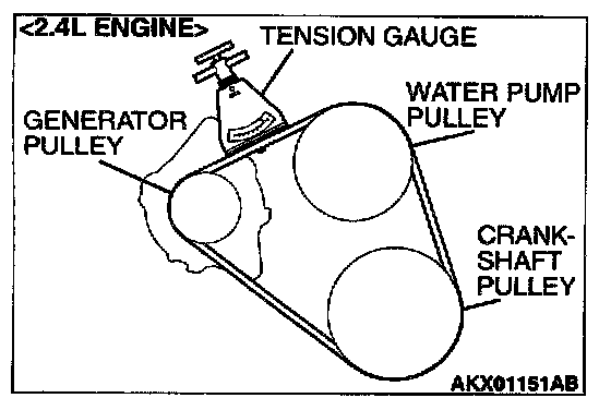 DRIVE BELT (FOR GENERATOR, WATER PUMP, A/C COMPRESSOR AND POWER STEERING PUMP) (CHECK CONDITION)Water Pump <2.4L ENGINE>, A/C Compressor <3.0L ENGINE> and Generator Drive Belt Tension Check and Adjustment