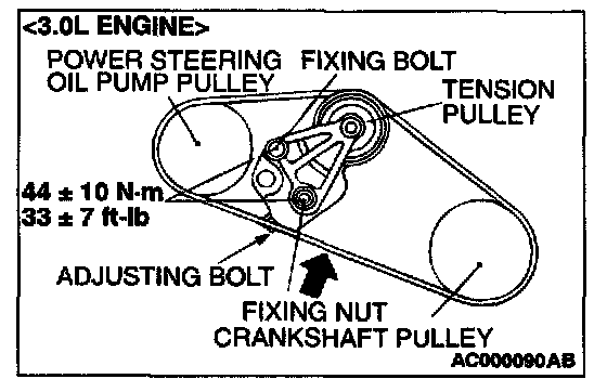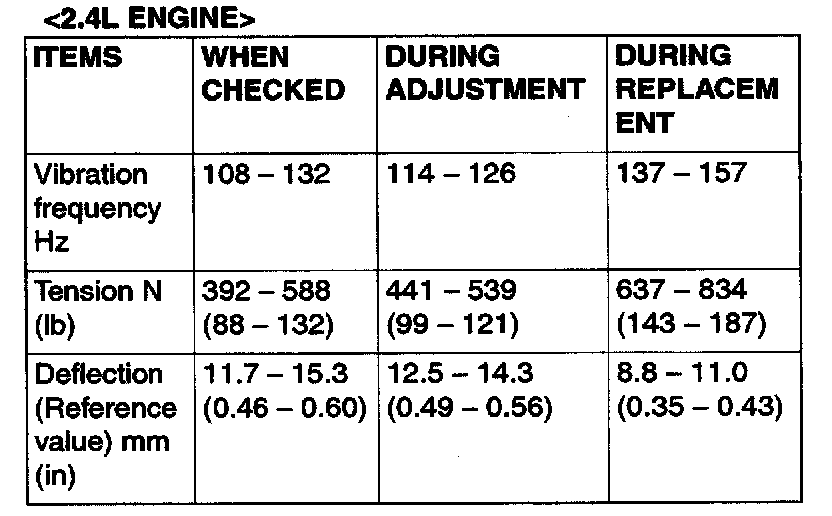 Power Steering Oil Pump and A/C Compressor <2.4L ENGINE> Drive Belt Tension Check and Adjustment