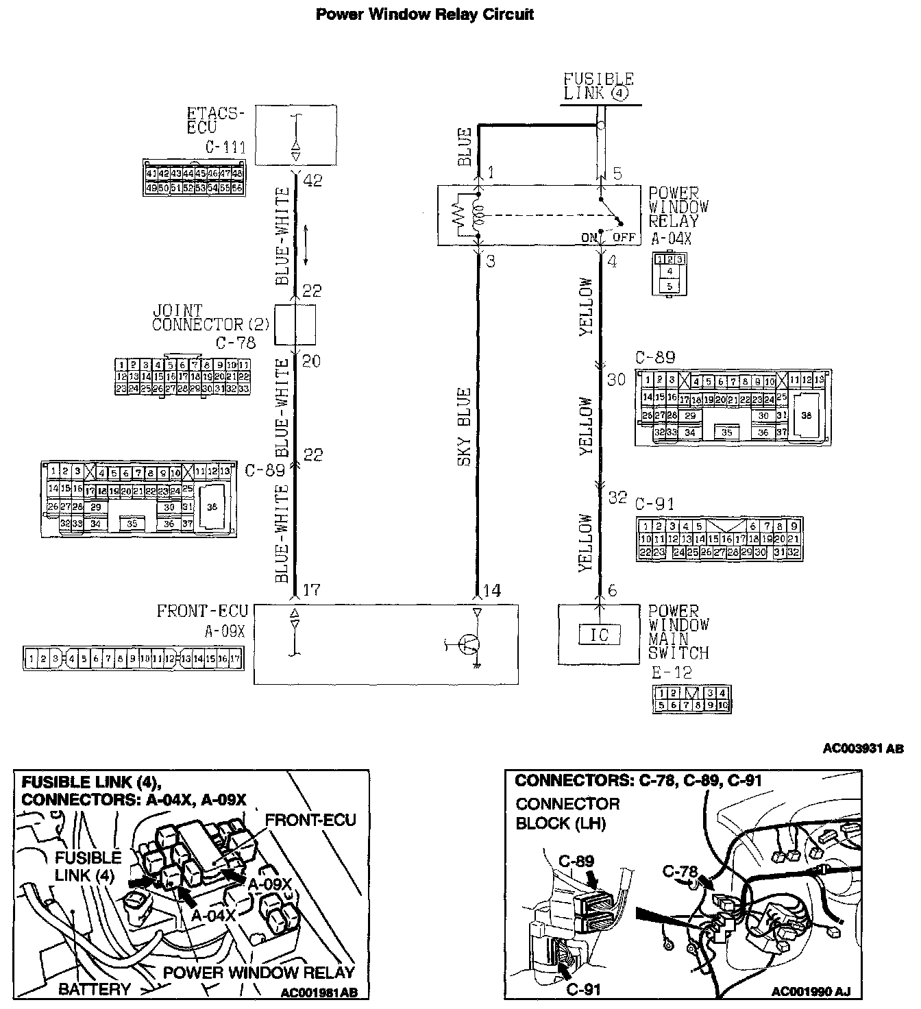 - The power window relay is controlled by the front-ECU and the ETACS-ECU