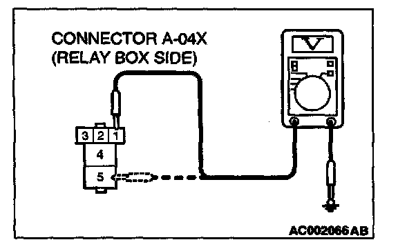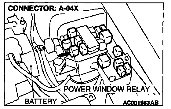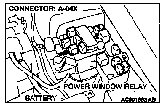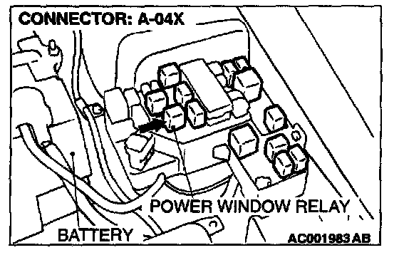 1. Disconnect the power window relay connector A-04X and measure at the relay box side.