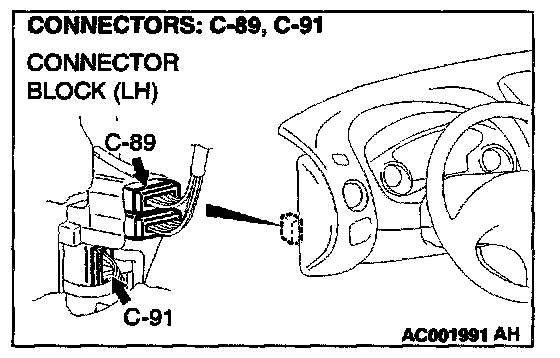 NOTE: After checking intermediate connectors C-89 and C-91, check the wires. If intermediate connectors C-89 and C-91 are damaged, repair or replace them. Refer to Harness Connector Inspection.