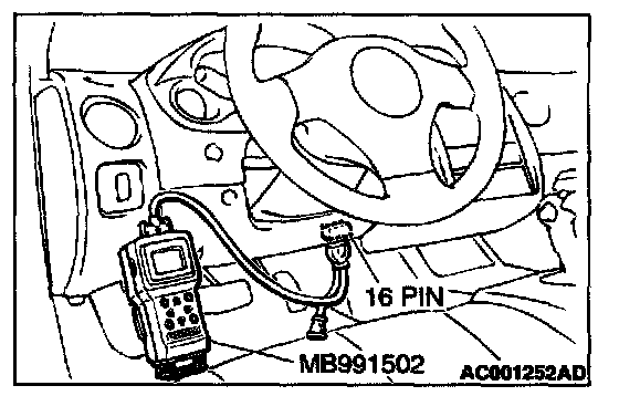1. Connect scan tool MB991502 to the data link connector.