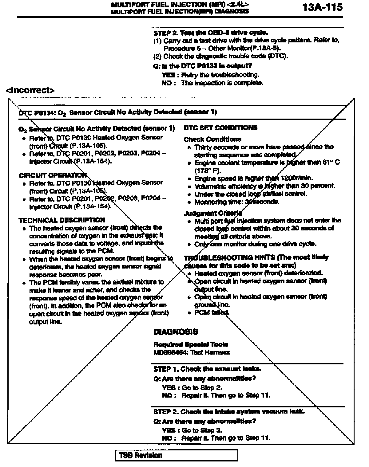 DIAGNOSIS CORRECTIONS FOR DTCs P0134 & P0154 - SERVICE MANUAL REVISION