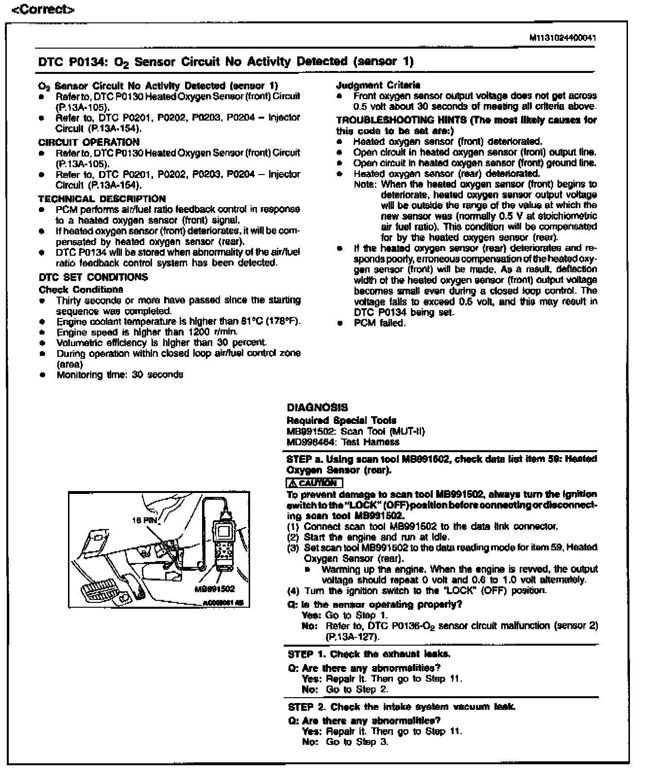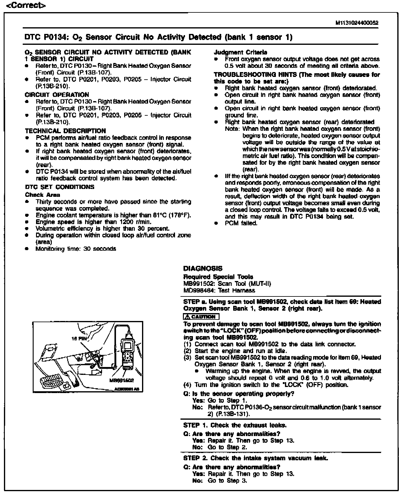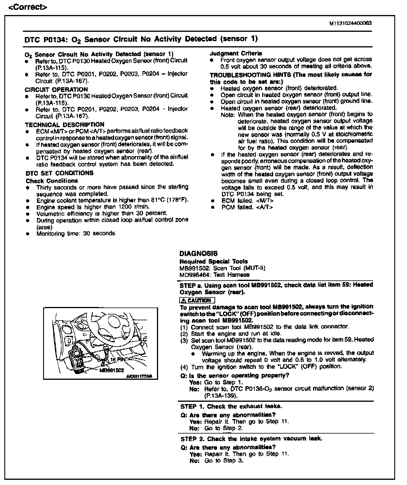 DTC P0134 & P0154 (O2S) - Diagnosis Corrections