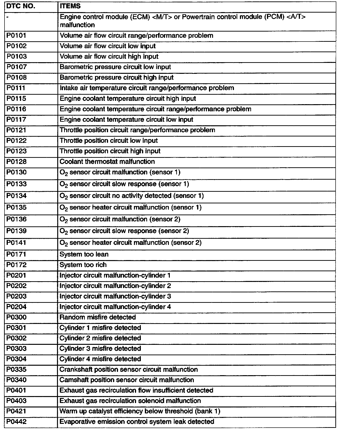 Items Indicated By The Service Engine Soon/Malfunction Indicator Lamp Part 1: