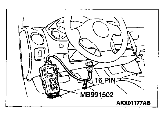 1. Connect scan tool MB991502 to the data link connector.