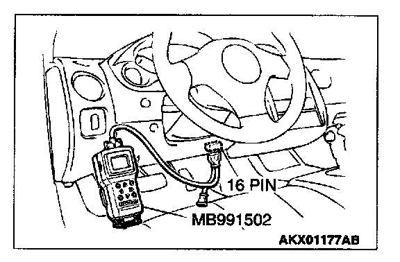 CAUTION: To prevent damage to scan tool MB991502, always turn the ignition switch to the "LOCK" (OFF) position before connecting or disconnecting scan tool MB991502.