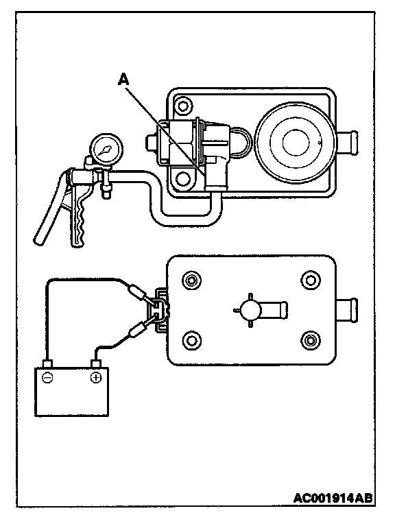 4. Check air tightness by applying a vacuum with voltage applied directly from the battery to the ORVR vent valve module and without applying voltage.