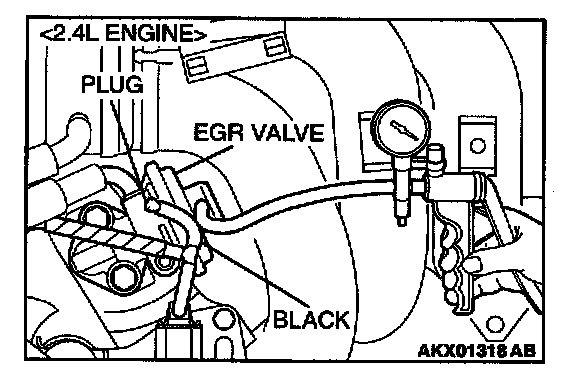 1. Disconnect the vacuum hose (black) from the EGR valve, and then connect a hand vacuum pump via the Tee-fitting.