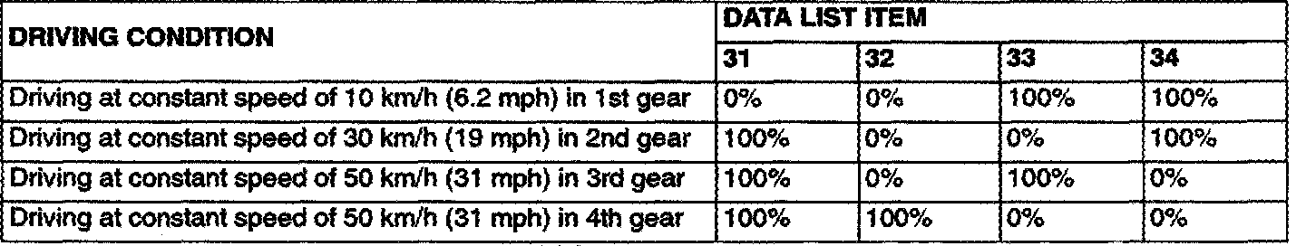 d. Item 34: Overdrive Solenoid Valve Duty Percent Check that the values shown are displayed when each data list item is entered.
