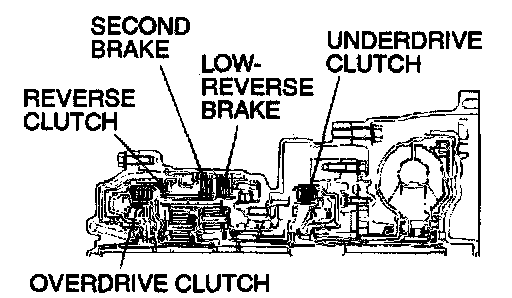 2. Blow compressed air into the each brake oil orifice and clutch oil orifice of the transaxle case, and check if the each brake and clutch piston move and air pressure is maintained.