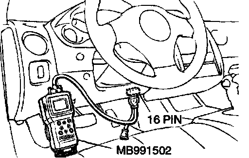 1. Connect scan tool MB991502 to the data link connector.