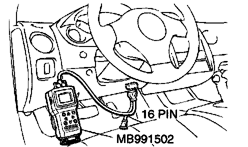CAUTION: To prevent damage to scan tool MB991502, always turn the ignition switch to the "LOCK" (OFF) position before connecting or disconnecting scan tool MB991502.