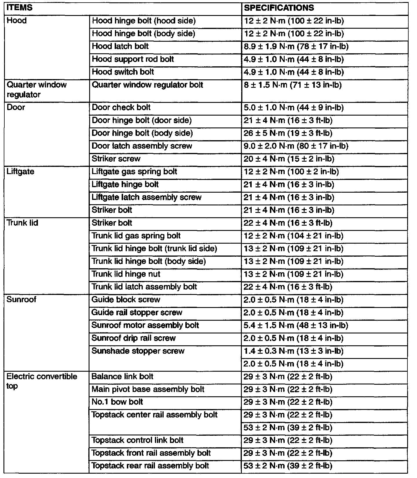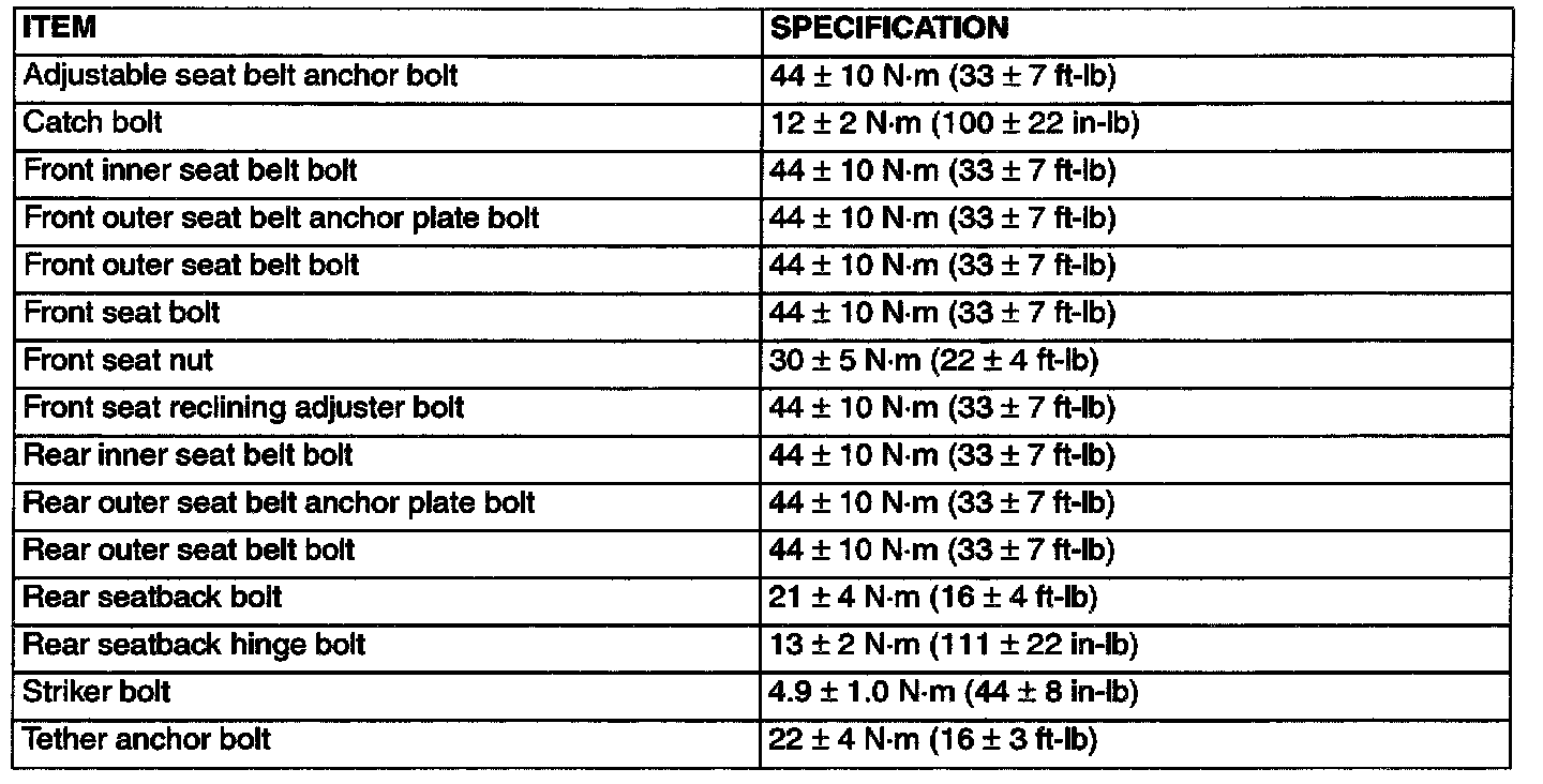 Fastener Tightening Specifications: