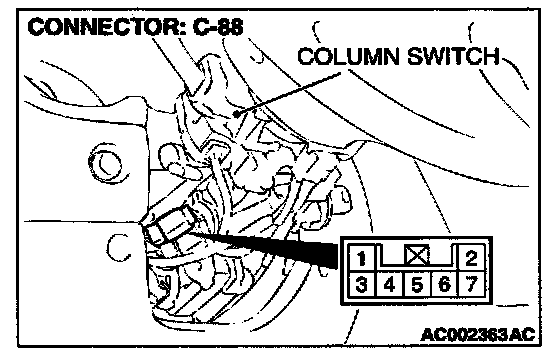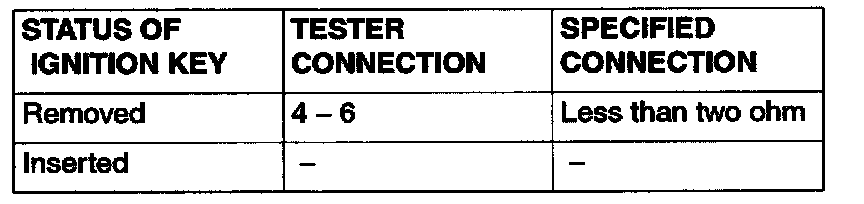 KEY REMINDER SWITCH AND IGNITION KEY RING ANTENNA CONTINUITY CHECK1. Ignition key reminder switch continuity check. Disconnect key reminder switch connector C-88 without removing the ignition switch and steering lock cylinder. Then check the continuity