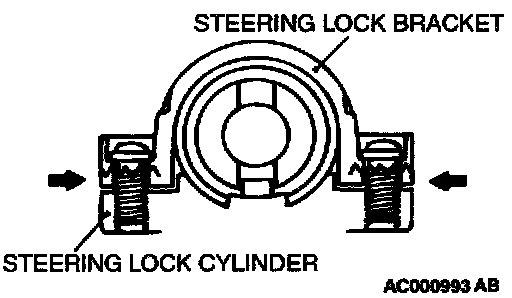 If it is necessary to remove the steering lock cylinder, use a hacksaw to cut the special bolts at the steering lock bracket side.