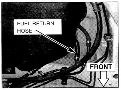 16. Disconnect the fuel return hose from the return tube. Save the small hose clamps for use with the new hose.