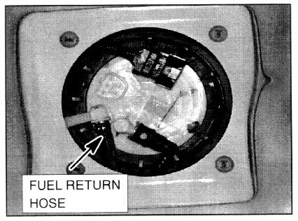 9. Disconnect the fuel return hose from the fuel pump module.