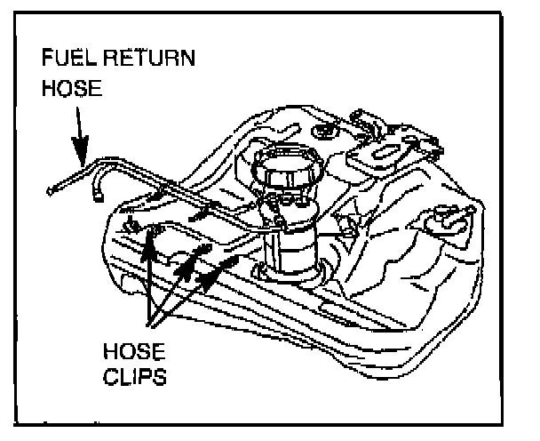 18. Install the new fuel return hose to the three clips on top of the tank.