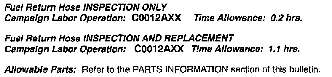 FUEL RETURN HOSE - SAFETY RECALL CAMPAIGN