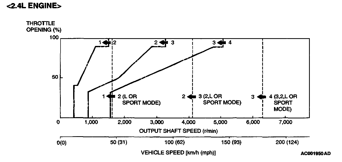 <2.4L Engine> UPSHIFT PATTERN