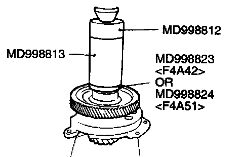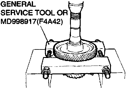 1. Support the transfer driven gear with general service tool or special tool MD998917 (F4A42), and then set them on the press.