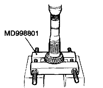 1. Support the taper roller bearing with the special tool MD998801, and then set them on the press.