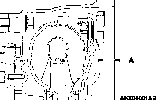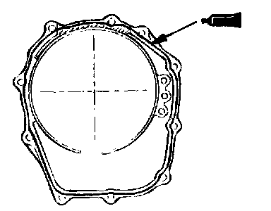 82. Apply a 2 mm (0.08 inch) diameter bead of sealant (MITSUBISHI Genuine Part number MD974421 or equivalent) to the torque converter housing in the area shown.