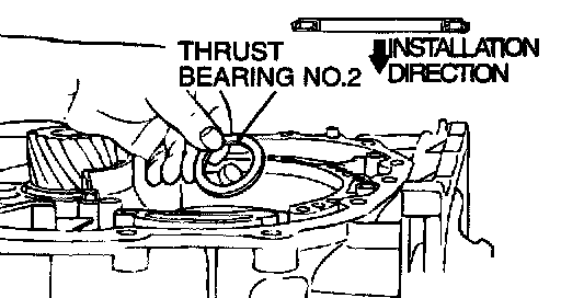 57. Check the installation direction of thrust bearing number 2, and install it on the underdrive clutch hub.