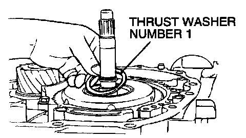 67. Install thrust washer number 1 that was selected in step 65 on the underdrive clutch retainer.
